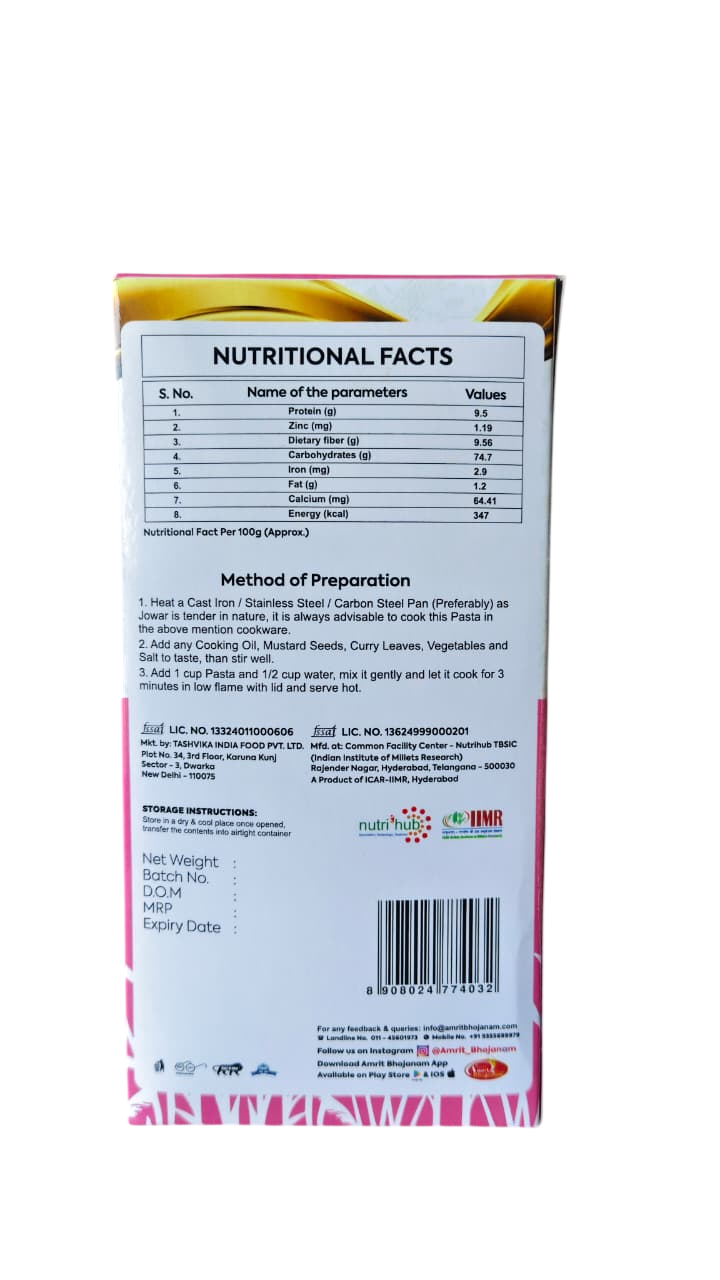 Experience the delightful fusion of taste and nutrition with our Jowar Pasta! Made from wholesome jowar flour, this pasta offers a healthy alternative to regular wheat-based pasta. It's an excellent choice for those looking to enjoy their favorite dishes with added fiber and nutrients.